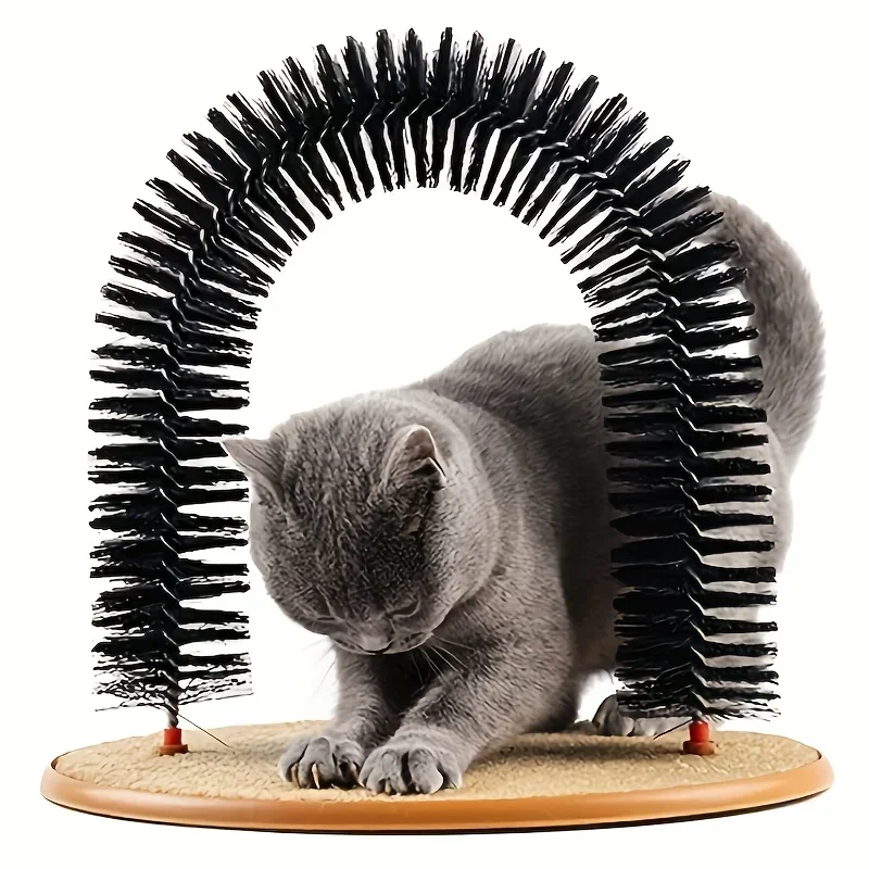 Foldable PVC Cat Grooming Arch - 4-in-1 Self-Cleaning Brush, Scratching Board & All-Ages Hair Tool, Space-Saving Design, No Batteries Needed, Interactive Cat Toy for Bath Time & Bonding, Cat Grooming Supplies, Easy Storage Design